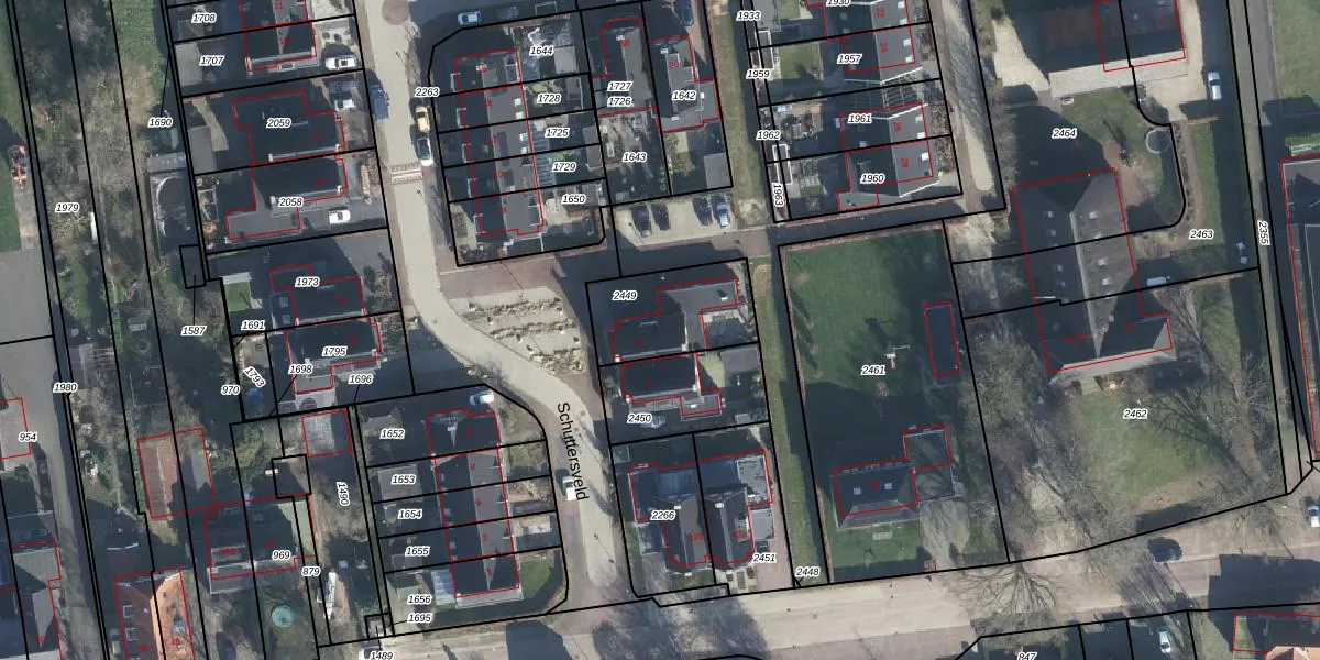 Schuttersveld 6 is gelegen op kadastraal perceel DVN00H2449. Deze kadastrale aanduiding is uniek en wordt gebruikt door het Kadaster om eigendomsrechten en andere zakelijke rechten vast te leggen. Het perceel maakt onderdeel uit van de kadastrale gemeente Duiven.
