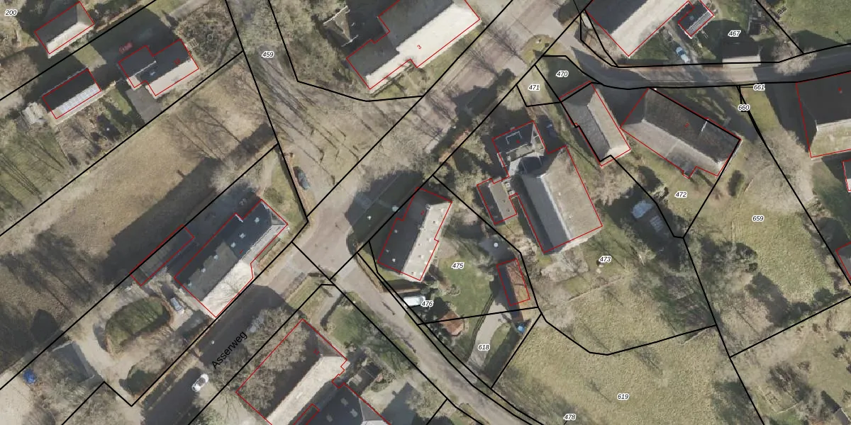 Asserweg 2 is gelegen op kadastraal perceel ASN00AA475. Deze kadastrale aanduiding is uniek en wordt gebruikt door het Kadaster om eigendomsrechten en andere zakelijke rechten vast te leggen. Het perceel maakt onderdeel uit van de kadastrale gemeente Assen.