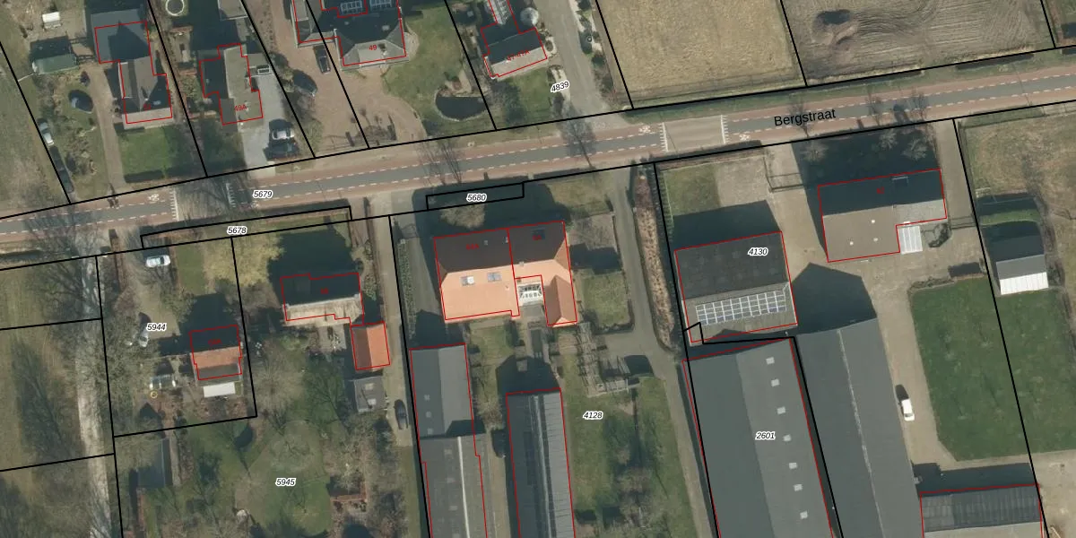 Het perceel waarop Bergstraat 64 staat heeft een oppervlakte van 3990 m². Dit is een zeer groot perceel. De perceeloppervlakte wordt geregistreerd door het Kadaster. Gedetailleerde informatie over de maten van dit perceel kunt u vinden in het rapport Kadastrale kaart met maatvoering van Bergstraat 64.