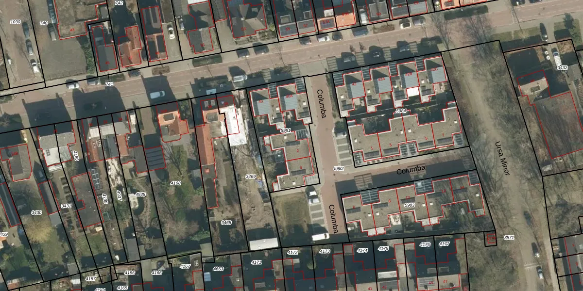 Het perceel waarop Columba 2 staat heeft een oppervlakte van 696 m². Dit is een groot perceel. De perceeloppervlakte wordt geregistreerd door het Kadaster. Gedetailleerde informatie over de maten van dit perceel kunt u vinden in het rapport Kadastrale kaart met maatvoering van Columba 2.