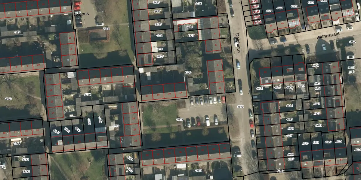 Delphinus 14 is gelegen op kadastraal perceel LOO00E5328. Deze kadastrale aanduiding is uniek en wordt gebruikt door het Kadaster om eigendomsrechten en andere zakelijke rechten vast te leggen. Het perceel maakt onderdeel uit van de kadastrale gemeente Loon op Zand.