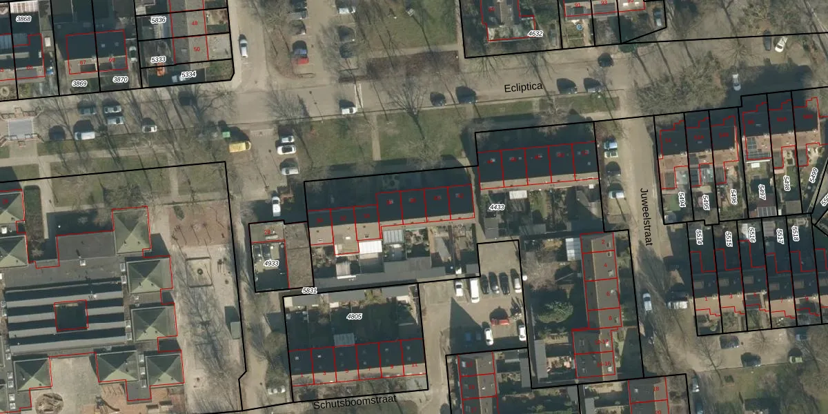 Het perceel waarop Ecliptica 38 staat heeft een oppervlakte van 2877 m². Dit is een zeer groot perceel. De perceeloppervlakte wordt geregistreerd door het Kadaster. Gedetailleerde informatie over de maten van dit perceel kunt u vinden in het rapport Kadastrale kaart met maatvoering van Ecliptica 38.