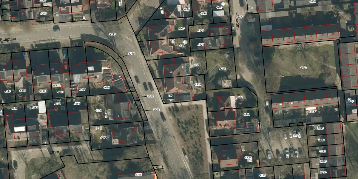 Het perceel waarop Ecliptica 39 staat heeft een oppervlakte van 365 m². Dit is een groot perceel. De perceeloppervlakte wordt geregistreerd door het Kadaster. Gedetailleerde informatie over de maten van dit perceel kunt u vinden in het rapport Kadastrale kaart met maatvoering van Ecliptica 39.