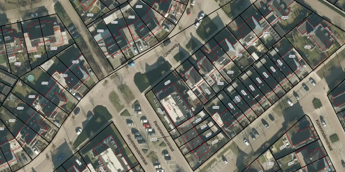 Het perceel waarop Gildeweg 65 staat heeft een oppervlakte van 530 m². Dit is een groot perceel. De perceeloppervlakte wordt geregistreerd door het Kadaster. Gedetailleerde informatie over de maten van dit perceel kunt u vinden in het rapport Kadastrale kaart met maatvoering van Gildeweg 65.