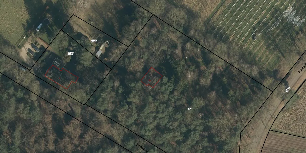 Het perceel waarop Bosweg 1-a staat heeft een oppervlakte van 7060 m². Dit is een zeer groot perceel. De perceeloppervlakte wordt geregistreerd door het Kadaster. Gedetailleerde informatie over de maten van dit perceel kunt u vinden in het rapport Kadastrale kaart met maatvoering van Bosweg 1-a.
