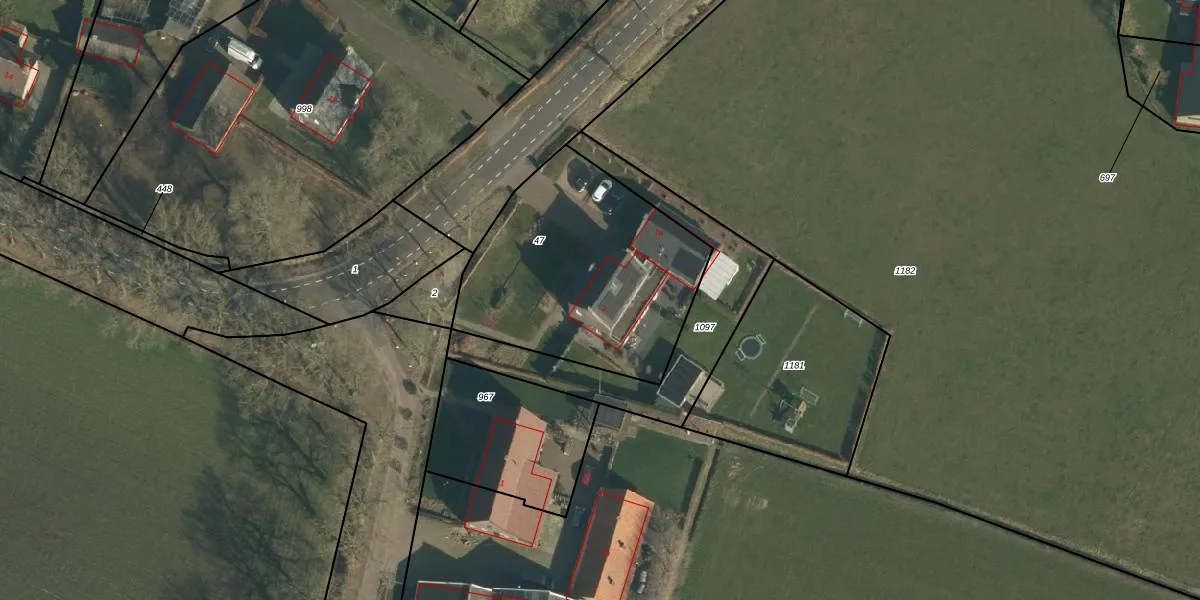 Het perceel waarop Dorpsstraat 7 staat heeft een oppervlakte van 1080 m². Dit is een zeer groot perceel. De perceeloppervlakte wordt geregistreerd door het Kadaster. Gedetailleerde informatie over de maten van dit perceel kunt u vinden in het rapport Kadastrale kaart met maatvoering van Dorpsstraat 7.