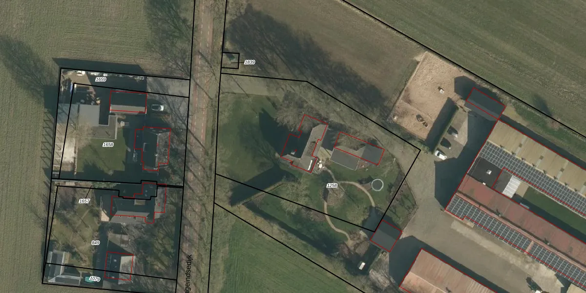 Laageindsedijk 4 is gelegen op kadastraal perceel HWK02D1258. Deze kadastrale aanduiding is uniek en wordt gebruikt door het Kadaster om eigendomsrechten en andere zakelijke rechten vast te leggen. Het perceel maakt onderdeel uit van de kadastrale gemeente Heeswijk-Dinther.