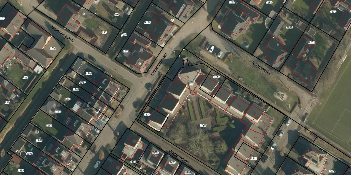 Het perceel waarop Molenhoeven 34 staat heeft een oppervlakte van 2904 m². Dit is een zeer groot perceel. De perceeloppervlakte wordt geregistreerd door het Kadaster. Gedetailleerde informatie over de maten van dit perceel kunt u vinden in het rapport Kadastrale kaart met maatvoering van Molenhoeven 34.