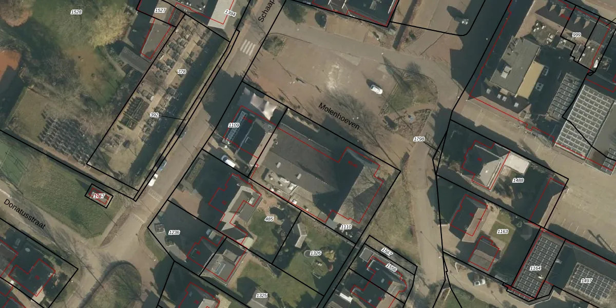 Het perceel waarop Molenhoeven 45 staat heeft een oppervlakte van 1140 m². Dit is een zeer groot perceel. De perceeloppervlakte wordt geregistreerd door het Kadaster. Gedetailleerde informatie over de maten van dit perceel kunt u vinden in het rapport Kadastrale kaart met maatvoering van Molenhoeven 45.