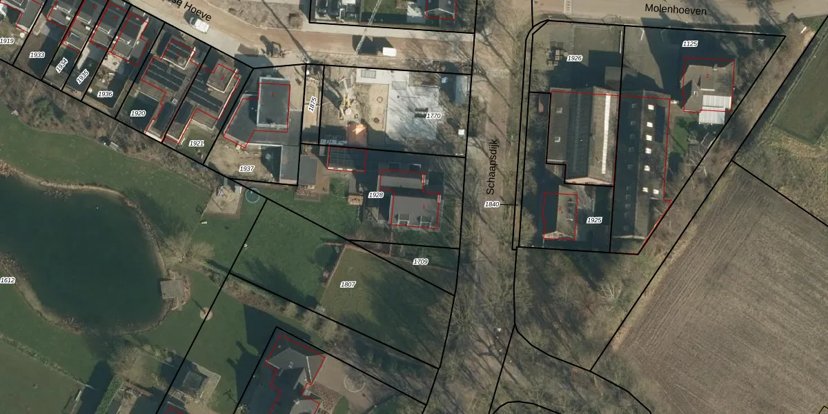 Het perceel waarop Schaapsdijk 1 staat heeft een oppervlakte van 900 m². Dit is een groot perceel. De perceeloppervlakte wordt geregistreerd door het Kadaster. Gedetailleerde informatie over de maten van dit perceel kunt u vinden in het rapport Kadastrale kaart met maatvoering van Schaapsdijk 1.