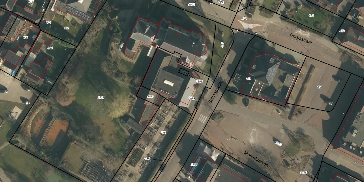 Het perceel waarop Schaapsdijk 27 staat heeft een oppervlakte van 715 m². Dit is een groot perceel. De perceeloppervlakte wordt geregistreerd door het Kadaster. Gedetailleerde informatie over de maten van dit perceel kunt u vinden in het rapport Kadastrale kaart met maatvoering van Schaapsdijk 27.