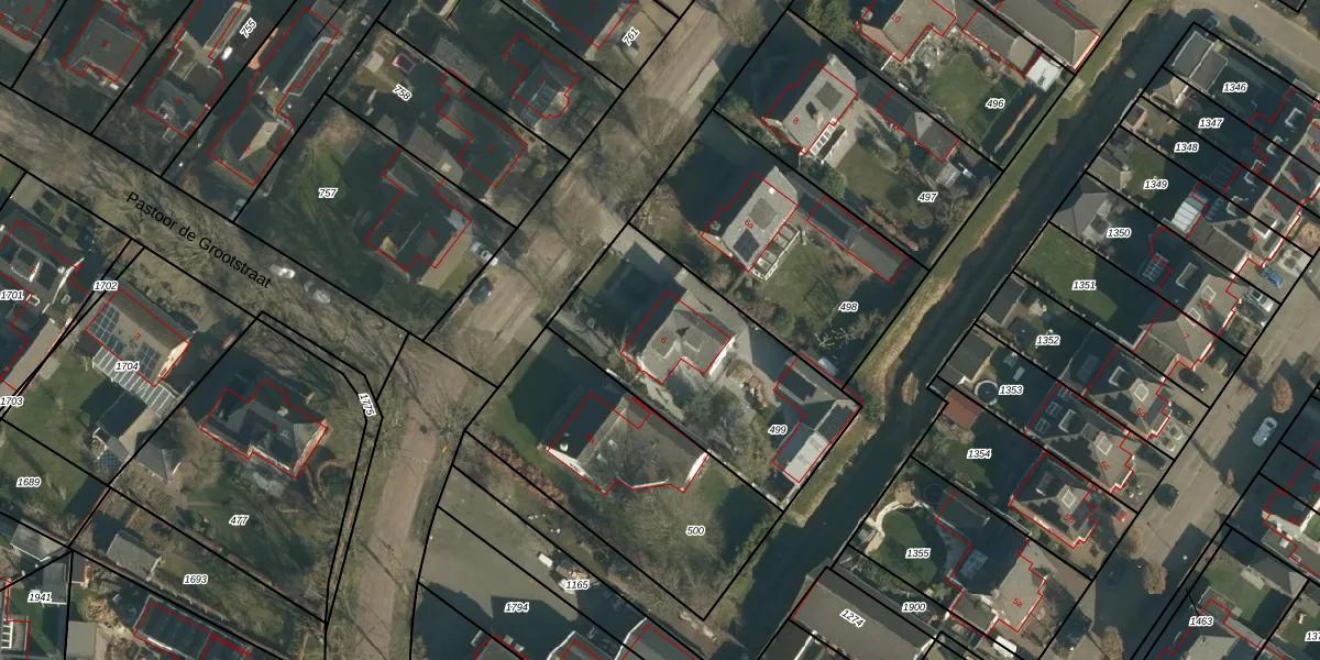 Het adres ligt op het perceel HWK02-D-499, dat zich in de kadastrale gemeente Heeswijk-Dinther bevindt. De gemiddelde perceelgrootte in Heeswijk-Dinther is 4939,92 m². Dit perceel is kleiner: de perceeloppervlakte bedraagt 910 m². Het kleinste perceel in de kadastrale gemeente is 0 m² groot. De grootste perceeloppervlakte is 23,1 ha. Op het perceel bevinden zich geen andere adressen. De huidige grenzen van het perceel zijn digitaal in de Basisregistratie Kadaster (BRK) geregistreerd op 23-01-2012.
