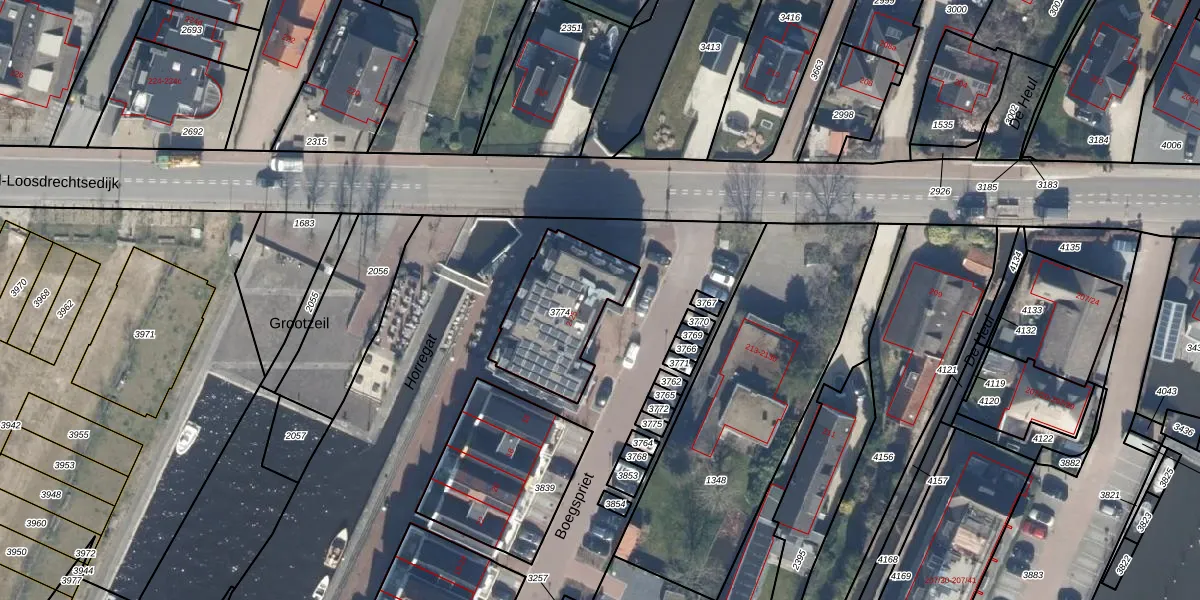 Het adres is gelegen op perceel 3774 in de sectie G en de kadastrale gemeente Loosdrecht. De kadastrale aanduiding is aldus LDT00-G-3774. Het perceel is 388 m² groot. Dat is kleiner dan de gemiddelde perceeloppervlakte in Loosdrecht, dat op 4440,6 m² ligt. De grootste perceeloppervlakte in de kadastrale gemeente is 1,29 km². De kleinste oppervlakte bedraagt 0 m². Op het perceel zijn 8 adressen aanwezig. In de Basisregistratie Kadaster (BRK) werden de grenzen van het perceel geregistreerd op 02-06-2021.