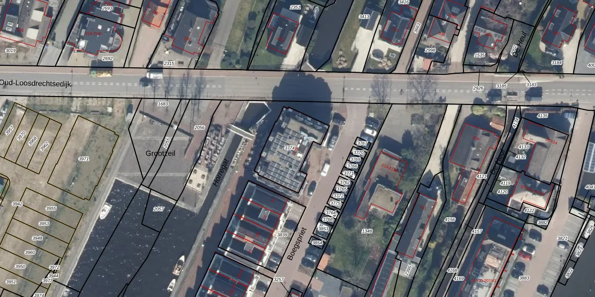 Het adres is gelegen op perceel 3774 in de sectie G en de kadastrale gemeente Loosdrecht. De kadastrale aanduiding is aldus LDT00-G-3774. Het perceel is 388 m² groot. Dat is kleiner dan de gemiddelde perceeloppervlakte in Loosdrecht, dat op 4439,39 m² ligt. De grootste perceeloppervlakte in de kadastrale gemeente is 1,29 km². De kleinste oppervlakte bedraagt 0 m². Op het perceel zijn 8 adressen aanwezig. In de Basisregistratie Kadaster (BRK) werden de grenzen van het perceel geregistreerd op 02-06-2021.