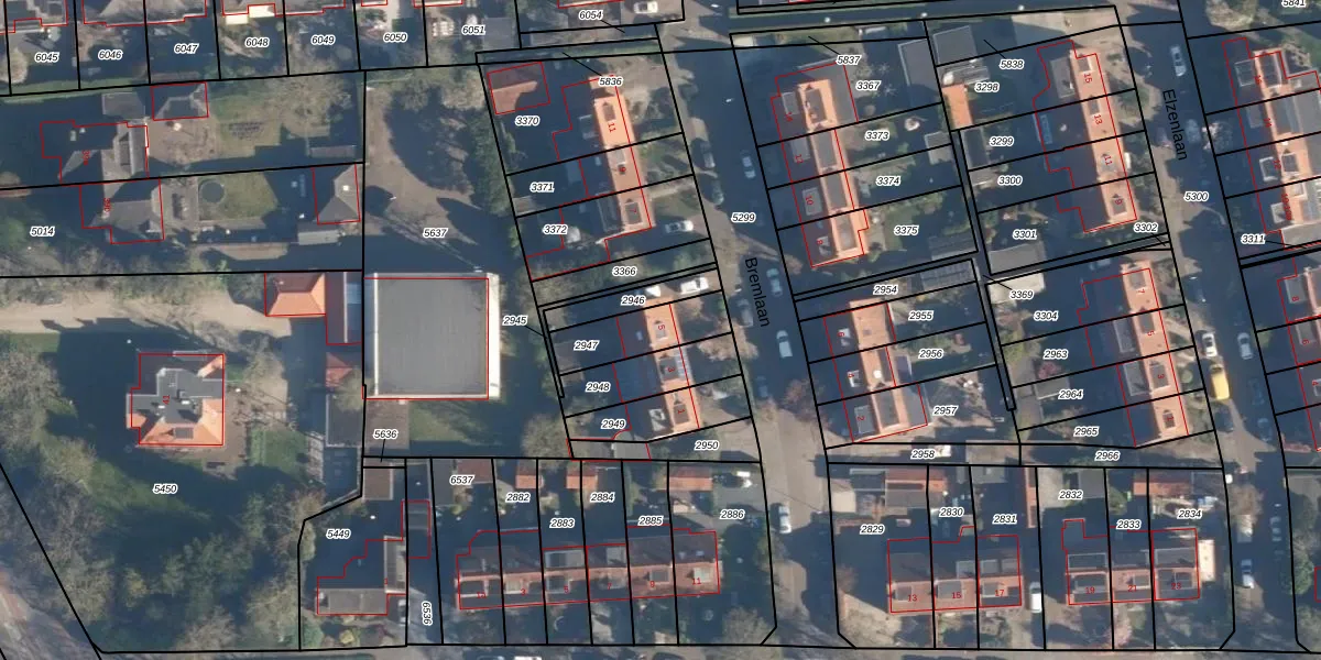 Gebruik de zoekbalk of klik op een perceel voor informatie over de adressen binnen dit perceel.