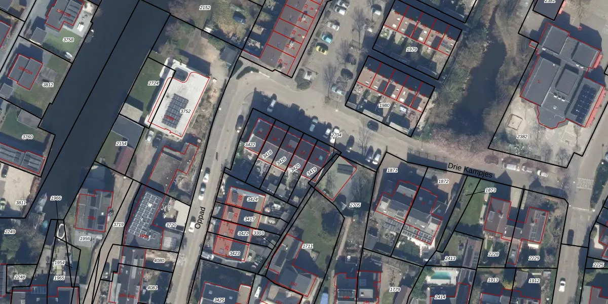 Gebruik de zoekbalk of klik op een perceel voor informatie over de adressen binnen dit perceel.