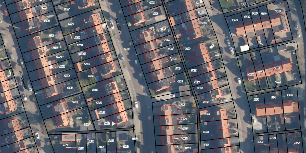 Gebruik de zoekbalk of klik op een perceel voor informatie over de adressen binnen dit perceel.