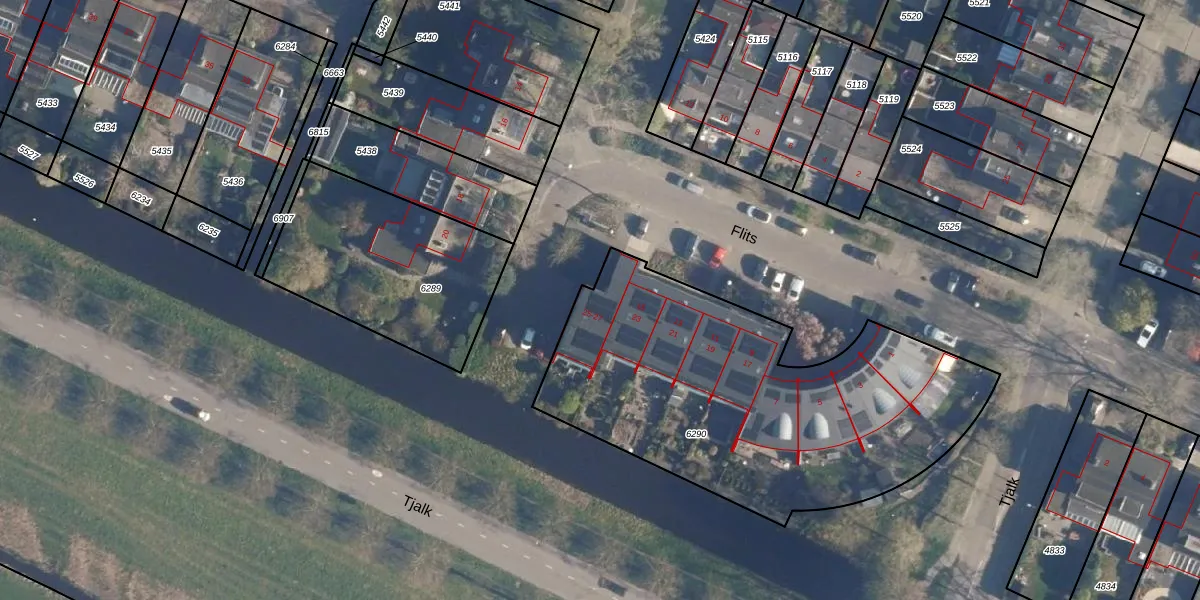 Het perceel waarop Flits 25 staat heeft een oppervlakte van 1930 m². Dit is een zeer groot perceel. De perceeloppervlakte wordt geregistreerd door het Kadaster. Gedetailleerde informatie over de maten van dit perceel kunt u vinden in het rapport Kadastrale kaart met maatvoering van Flits 25.