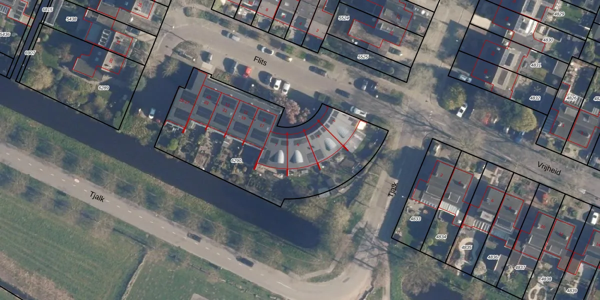Het perceel waarop Flits 5 staat heeft een oppervlakte van 1930 m². Dit is een zeer groot perceel. De perceeloppervlakte wordt geregistreerd door het Kadaster. Gedetailleerde informatie over de maten van dit perceel kunt u vinden in het rapport Kadastrale kaart met maatvoering van Flits 5.