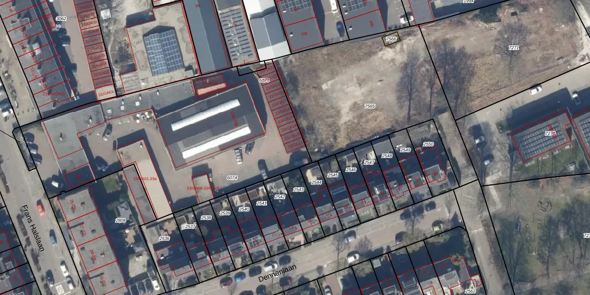 Frans Halslaan 23-GA12 is gelegen op kadastraal perceel LDT00C6074. Deze kadastrale aanduiding is uniek en wordt gebruikt door het Kadaster om eigendomsrechten en andere zakelijke rechten vast te leggen. Het perceel maakt onderdeel uit van de kadastrale gemeente Loosdrecht.