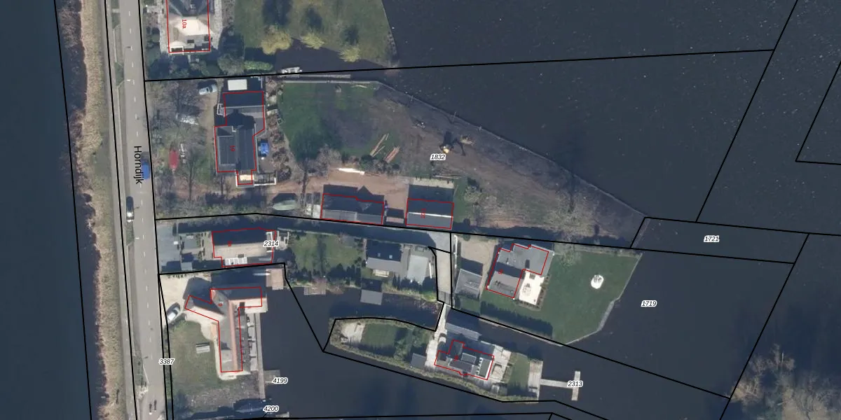 Het perceel waarop Horndijk 10-1 staat heeft een oppervlakte van 5490 m². Dit is een zeer groot perceel. De perceeloppervlakte wordt geregistreerd door het Kadaster. Gedetailleerde informatie over de maten van dit perceel kunt u vinden in het rapport Kadastrale kaart met maatvoering van Horndijk 10-1.
