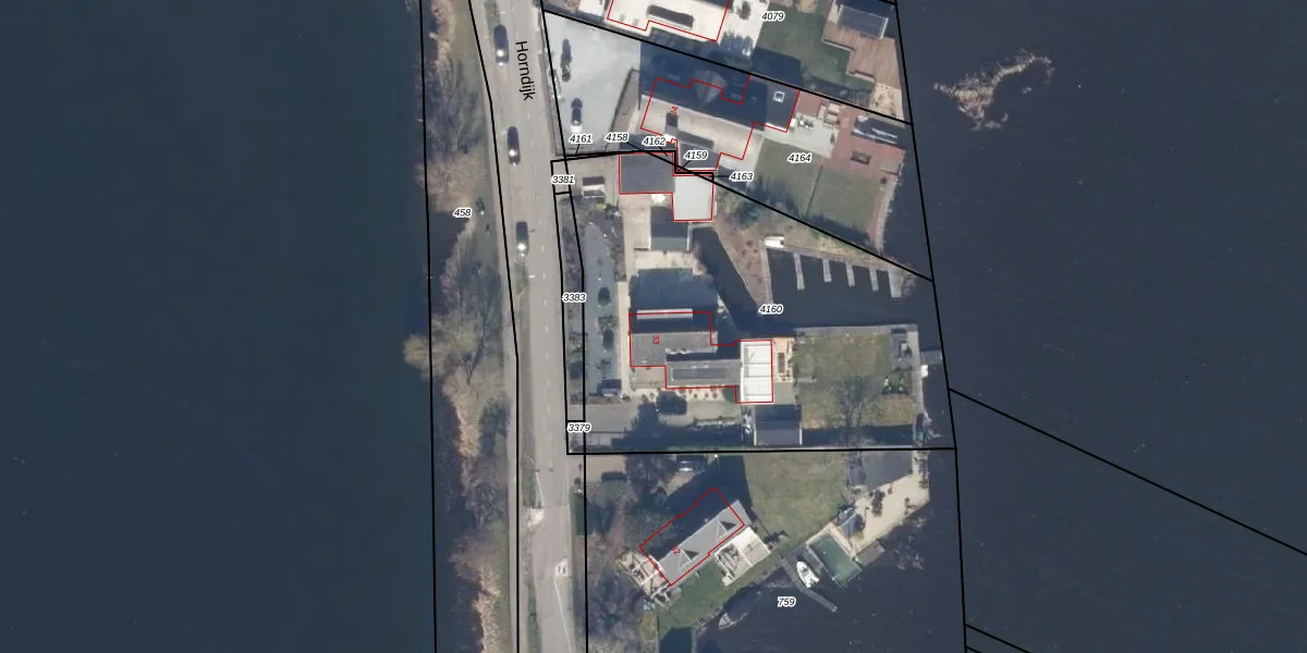 Het perceel waarop Horndijk 33 staat heeft een oppervlakte van 2093 m². Dit is een zeer groot perceel. De perceeloppervlakte wordt geregistreerd door het Kadaster. Gedetailleerde informatie over de maten van dit perceel kunt u vinden in het rapport Kadastrale kaart met maatvoering van Horndijk 33.