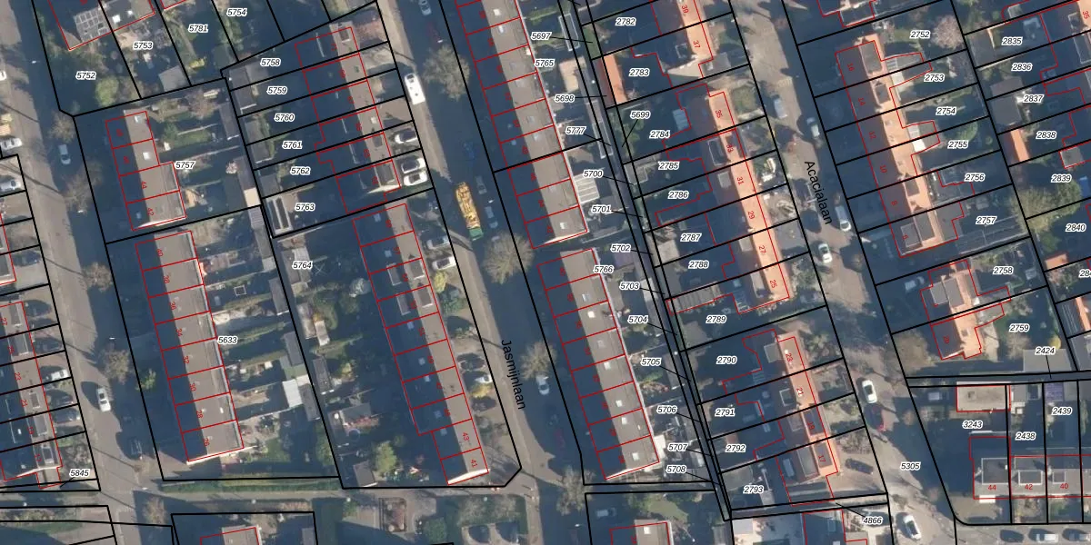 Jasmijnlaan 40 is gelegen op kadastraal perceel LDT00C5766. Deze kadastrale aanduiding is uniek en wordt gebruikt door het Kadaster om eigendomsrechten en andere zakelijke rechten vast te leggen. Het perceel maakt onderdeel uit van de kadastrale gemeente Loosdrecht.