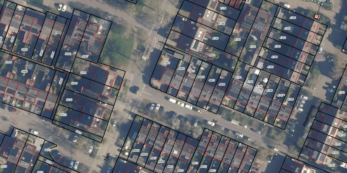 Het perceel waarop Jol 3 staat heeft een oppervlakte van 174 m². Dit is een middelgroot perceel. De perceeloppervlakte wordt geregistreerd door het Kadaster. Gedetailleerde informatie over de maten van dit perceel kunt u vinden in het rapport Kadastrale kaart met maatvoering van Jol 3.