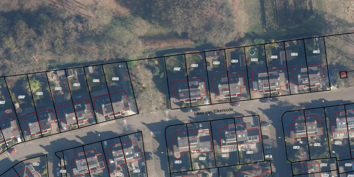 Laan van Eikenrode 21 is gelegen op kadastraal perceel LDT00C5727. Deze kadastrale aanduiding is uniek en wordt gebruikt door het Kadaster om eigendomsrechten en andere zakelijke rechten vast te leggen. Het perceel maakt onderdeel uit van de kadastrale gemeente Loosdrecht.