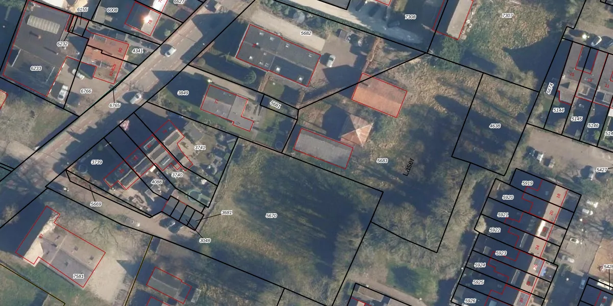 Het perceel waarop Laser 49 staat heeft een oppervlakte van 2350 m². Dit is een zeer groot perceel. De perceeloppervlakte wordt geregistreerd door het Kadaster. Gedetailleerde informatie over de maten van dit perceel kunt u vinden in het rapport Kadastrale kaart met maatvoering van Laser 49.