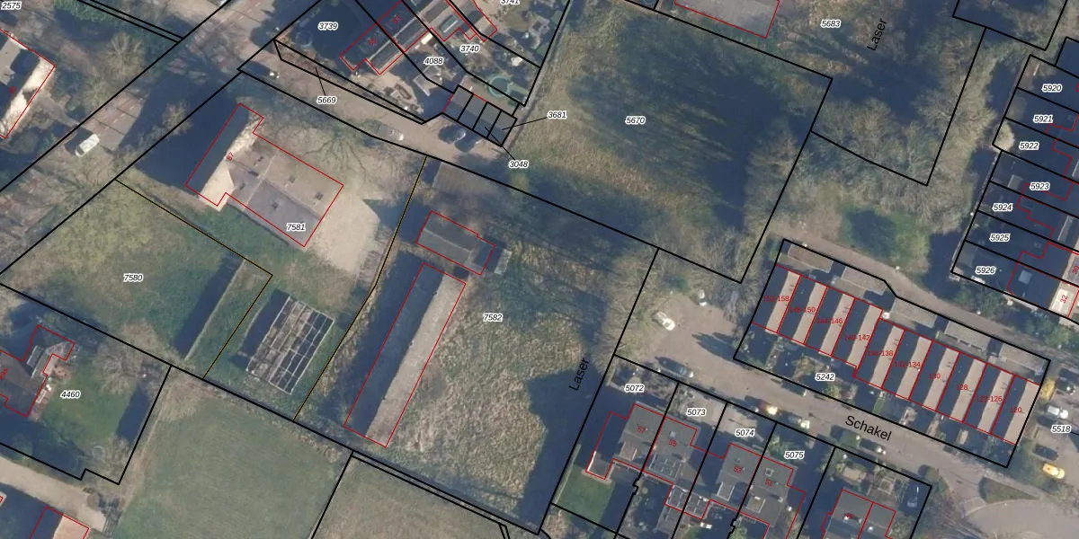 Het perceel waarop Laser 9 staat heeft een oppervlakte van 2630 m². Dit is een zeer groot perceel. De perceeloppervlakte wordt geregistreerd door het Kadaster. Gedetailleerde informatie over de maten van dit perceel kunt u vinden in het rapport Kadastrale kaart met maatvoering van Laser 9.
