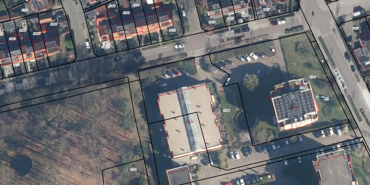 Het perceel waarop St. Annepad 60 staat heeft een oppervlakte van 2710 m². Dit is een zeer groot perceel. De perceeloppervlakte wordt geregistreerd door het Kadaster. Gedetailleerde informatie over de maten van dit perceel kunt u vinden in het rapport Kadastrale kaart met maatvoering van St. Annepad 60.