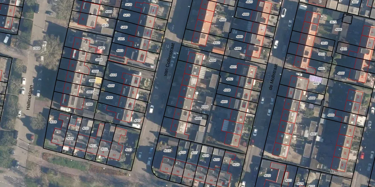 van Collenstraat 17 is gelegen op kadastraal perceel LDT00C4999. Deze kadastrale aanduiding is uniek en wordt gebruikt door het Kadaster om eigendomsrechten en andere zakelijke rechten vast te leggen. Het perceel maakt onderdeel uit van de kadastrale gemeente Loosdrecht.