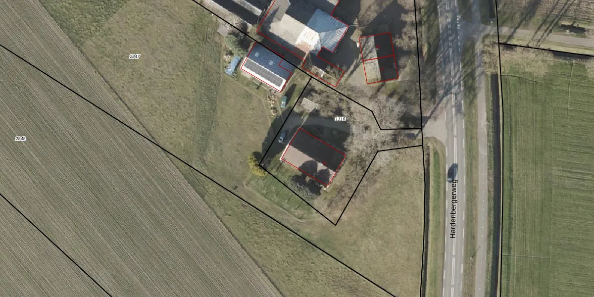 Hardenbergerweg 19 is gelegen op kadastraal perceel GBG00M1116. Deze kadastrale aanduiding is uniek en wordt gebruikt door het Kadaster om eigendomsrechten en andere zakelijke rechten vast te leggen. Het perceel maakt onderdeel uit van de kadastrale gemeente Gramsbergen.
