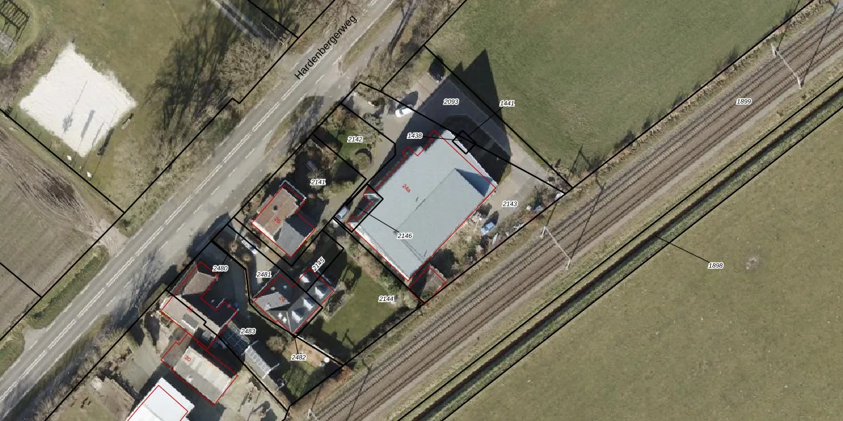 Hardenbergerweg 24-a is gelegen op kadastraal perceel GBG00M2143. Deze kadastrale aanduiding is uniek en wordt gebruikt door het Kadaster om eigendomsrechten en andere zakelijke rechten vast te leggen. Het perceel maakt onderdeel uit van de kadastrale gemeente Gramsbergen.