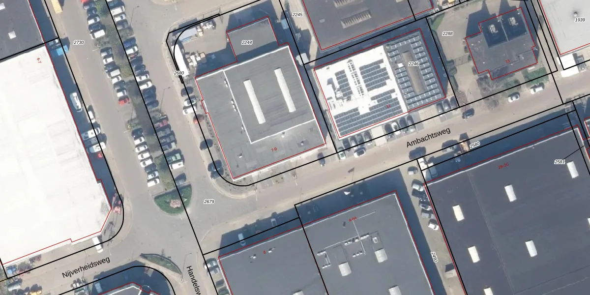 Het perceel waarop Ambachtsweg 7 staat heeft een oppervlakte van 2385 m². Dit is een zeer groot perceel. De perceeloppervlakte wordt geregistreerd door het Kadaster. Gedetailleerde informatie over de maten van dit perceel kunt u vinden in het rapport Kadastrale kaart met maatvoering van Ambachtsweg 7.