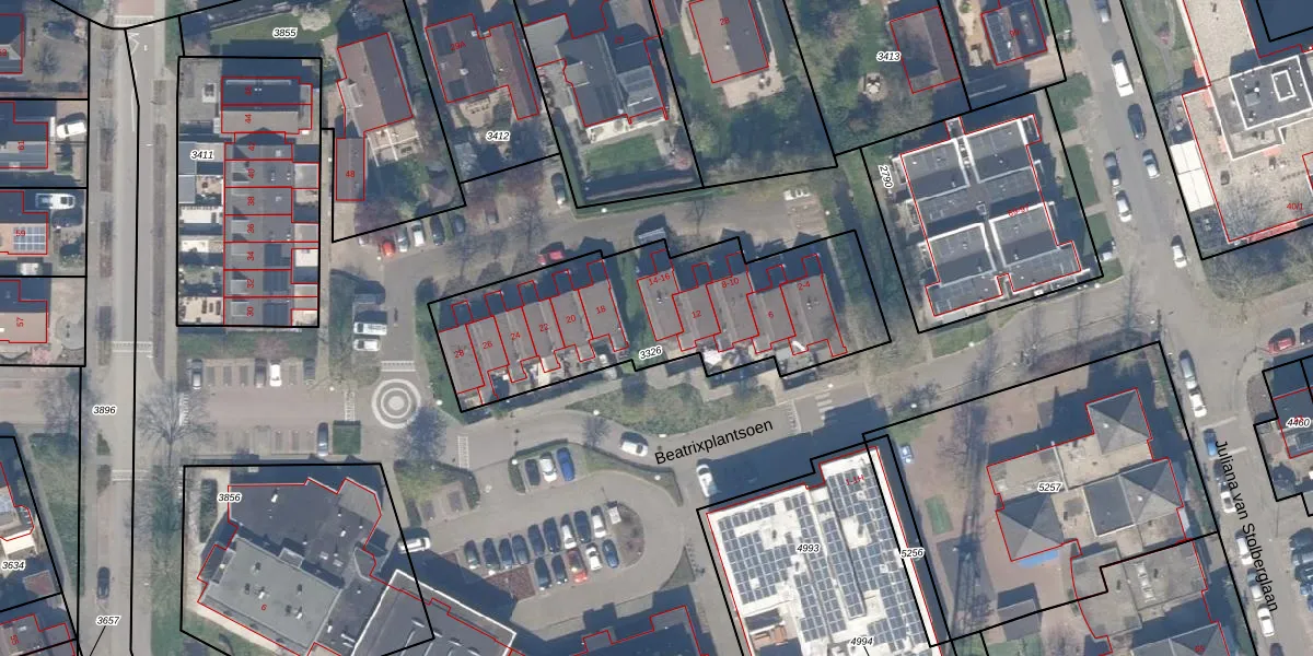 Beatrixplantsoen 16 is gelegen op kadastraal perceel JVD00B3326. Deze kadastrale aanduiding is uniek en wordt gebruikt door het Kadaster om eigendomsrechten en andere zakelijke rechten vast te leggen. Het perceel maakt onderdeel uit van de kadastrale gemeente Jaarsveld.
