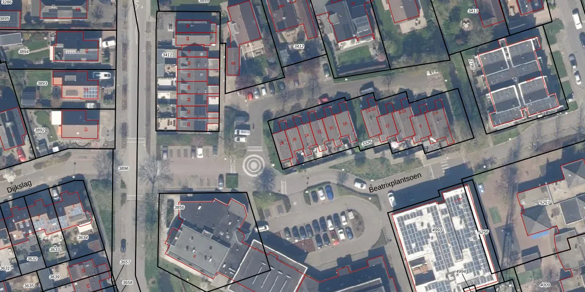 Beatrixplantsoen 26 is gelegen op kadastraal perceel JVD00B3326. Deze kadastrale aanduiding is uniek en wordt gebruikt door het Kadaster om eigendomsrechten en andere zakelijke rechten vast te leggen. Het perceel maakt onderdeel uit van de kadastrale gemeente Jaarsveld.