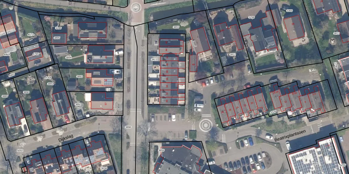 Beatrixplantsoen 34 is gelegen op kadastraal perceel JVD00B3411. Deze kadastrale aanduiding is uniek en wordt gebruikt door het Kadaster om eigendomsrechten en andere zakelijke rechten vast te leggen. Het perceel maakt onderdeel uit van de kadastrale gemeente Jaarsveld.