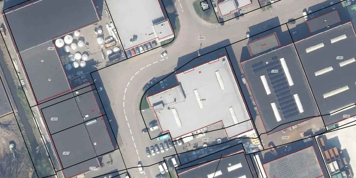 Het perceel waarop Bedrijfsweg 2 staat heeft een oppervlakte van 2102 m². Dit is een zeer groot perceel. De perceeloppervlakte wordt geregistreerd door het Kadaster. Gedetailleerde informatie over de maten van dit perceel kunt u vinden in het rapport Kadastrale kaart met maatvoering van Bedrijfsweg 2.