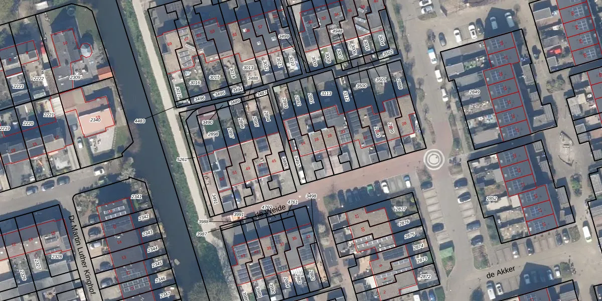 Het perceel waarop de Weide 14 staat heeft een oppervlakte van 162 m². Dit is een middelgroot perceel. De perceeloppervlakte wordt geregistreerd door het Kadaster. Gedetailleerde informatie over de maten van dit perceel kunt u vinden in het rapport Kadastrale kaart met maatvoering van de Weide 14.