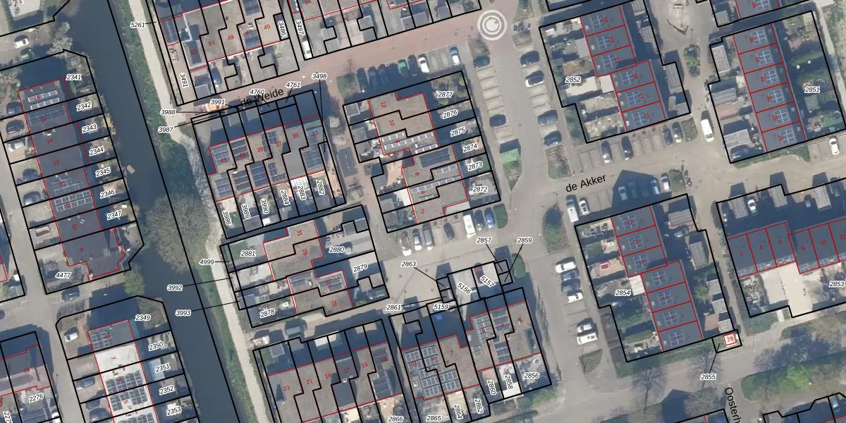 Gebruik de zoekbalk of klik op een perceel voor informatie over de adressen binnen dit perceel.