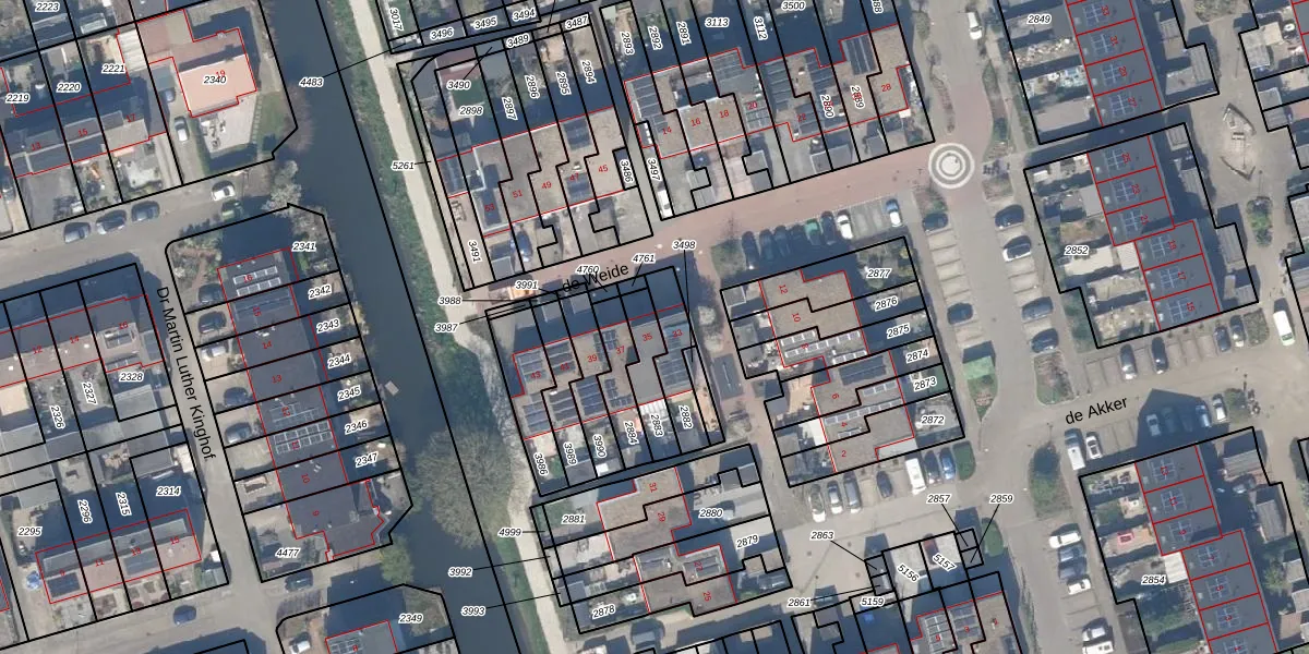 Gebruik de zoekbalk of klik op een perceel voor informatie over de adressen binnen dit perceel.
