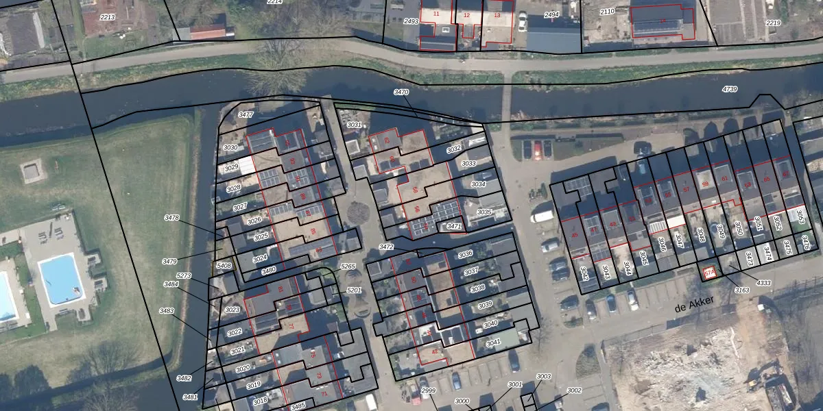Gebruik de zoekbalk of klik op een perceel voor informatie over de adressen binnen dit perceel.
