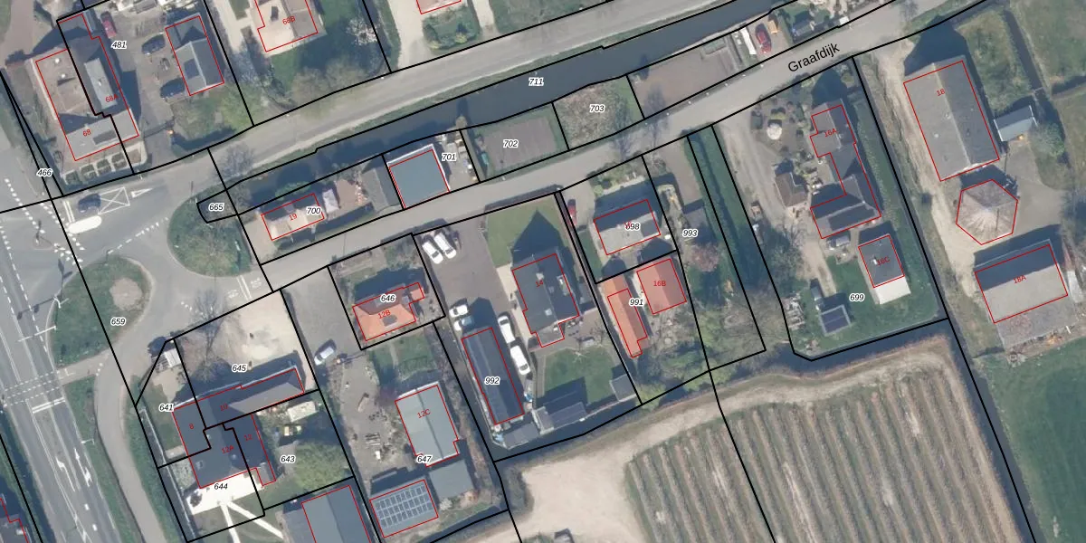 Graafdijk 14 is gelegen op kadastraal perceel LPK00F992. Deze kadastrale aanduiding is uniek en wordt gebruikt door het Kadaster om eigendomsrechten en andere zakelijke rechten vast te leggen. Het perceel maakt onderdeel uit van de kadastrale gemeente Lopik.