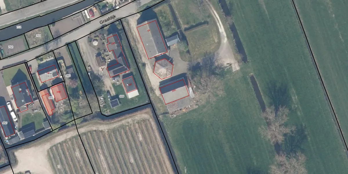 Het perceel waarop Graafdijk 18-A staat heeft een oppervlakte van 1,5 ha. Dit is een zeer groot perceel. De perceeloppervlakte wordt geregistreerd door het Kadaster. Gedetailleerde informatie over de maten van dit perceel kunt u vinden in het rapport Kadastrale kaart met maatvoering van Graafdijk 18-A.