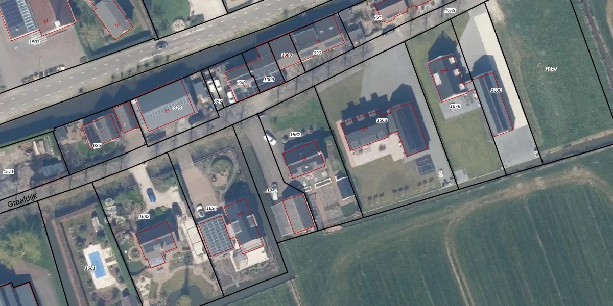 Het perceel waarop Graafdijk 2-B staat heeft een oppervlakte van 815 m². Dit is een groot perceel. De perceeloppervlakte wordt geregistreerd door het Kadaster. Gedetailleerde informatie over de maten van dit perceel kunt u vinden in het rapport Kadastrale kaart met maatvoering van Graafdijk 2-B.