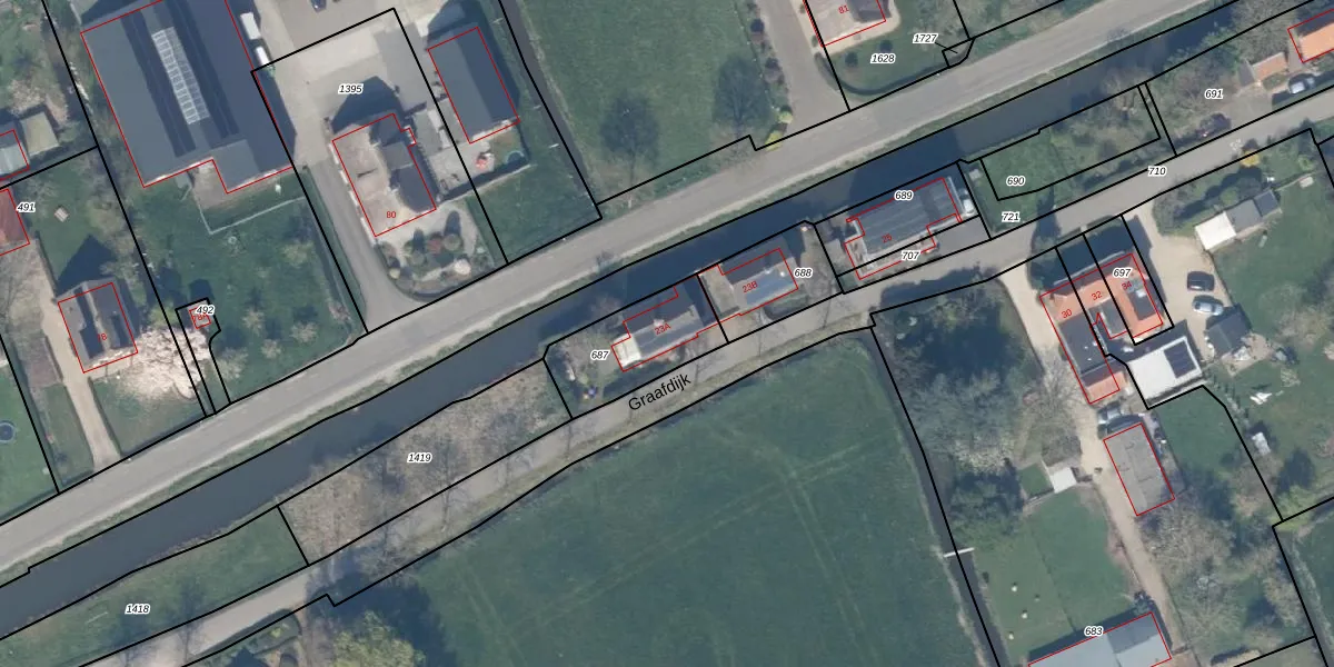 Graafdijk 23-A is gelegen op kadastraal perceel LPK00F687. Deze kadastrale aanduiding is uniek en wordt gebruikt door het Kadaster om eigendomsrechten en andere zakelijke rechten vast te leggen. Het perceel maakt onderdeel uit van de kadastrale gemeente Lopik.