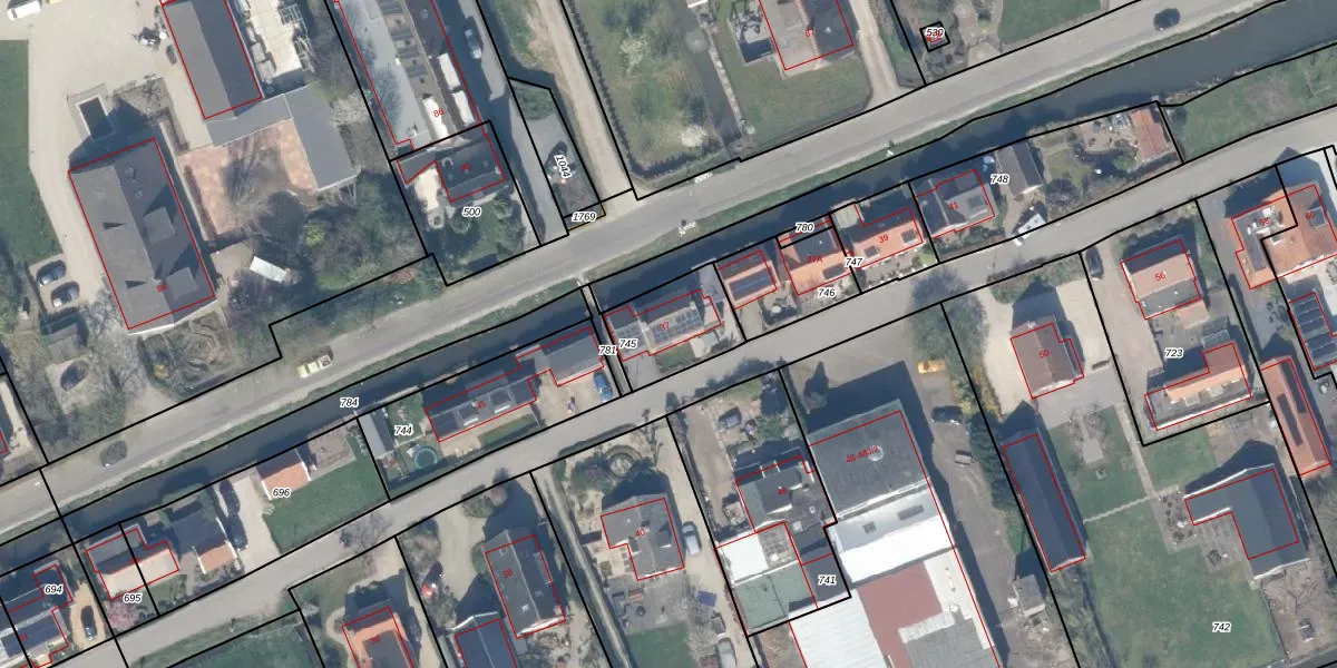 Het adres is gelegen op perceel 745 in de sectie F en de kadastrale gemeente Lopik. De kadastrale aanduiding is aldus LPK00-F-745. Het perceel is 240 m² groot. Dat is kleiner dan de gemiddelde perceeloppervlakte in Lopik, dat op 1,1 ha ligt. De grootste perceeloppervlakte in de kadastrale gemeente is 33,7 ha. De kleinste oppervlakte bedraagt 0 m². Er zijn geen andere adressen aanwezig op het perceel. De huidige grenzen van het perceel zijn digitaal in de Basisregistratie Kadaster (BRK) geregistreerd op 05-12-2002.