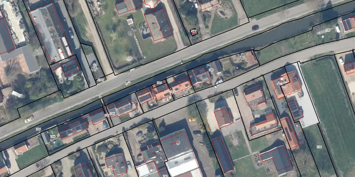 Het adres is gelegen op perceel 747 in de sectie F en de kadastrale gemeente Lopik. De kadastrale aanduiding is aldus LPK00-F-747. Het perceel is 165 m² groot. Dat is kleiner dan de gemiddelde perceeloppervlakte in Lopik, dat op 1,1 ha ligt. Het grootste perceel in de kadastrale gemeente is 33,7 ha. Het kleinste perceel heeft een oppervlakte van 0 m². Dit is het enige adres dat aanwezig is op het perceel. De huidige grenzen van het perceel zijn digitaal in de Basisregistratie Kadaster (BRK) geregistreerd op 05-12-2002.